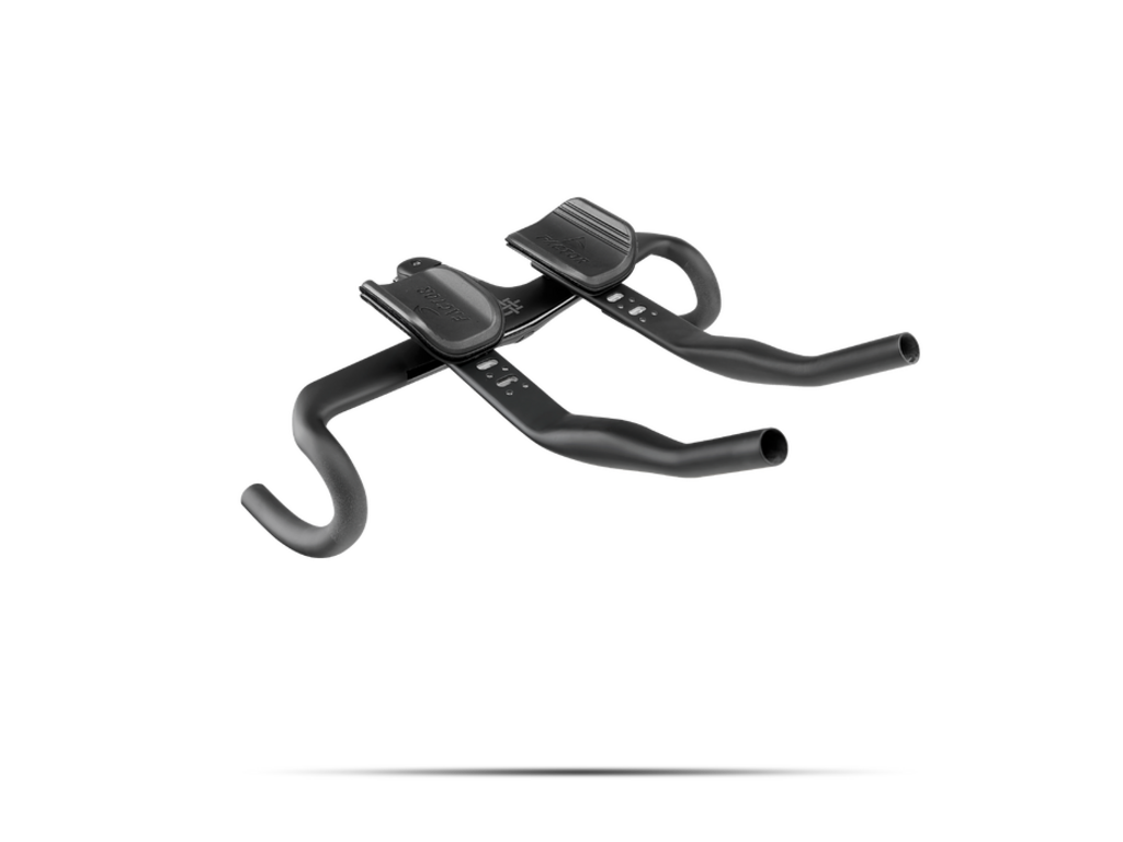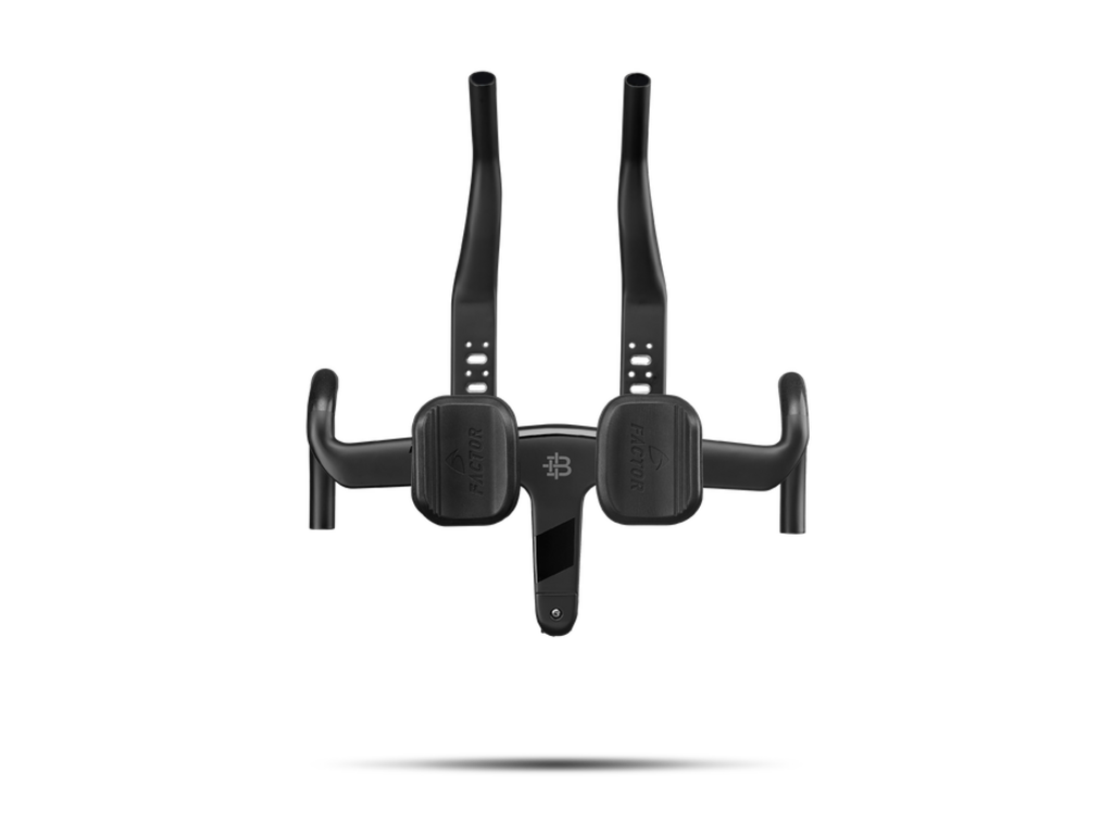 The Integrated Aero Barstem with Extensions allows you to achieve the most effective position possible, whether that’s all-out aero for a triathlon or a balance of comfort and efficiency for an ultra-distance event. The extensions themselves were developed for the Hanzo TT bike and provide an aero advantage compared to round poles by directing air around the forearms.