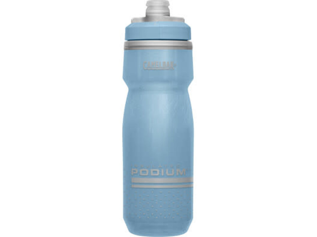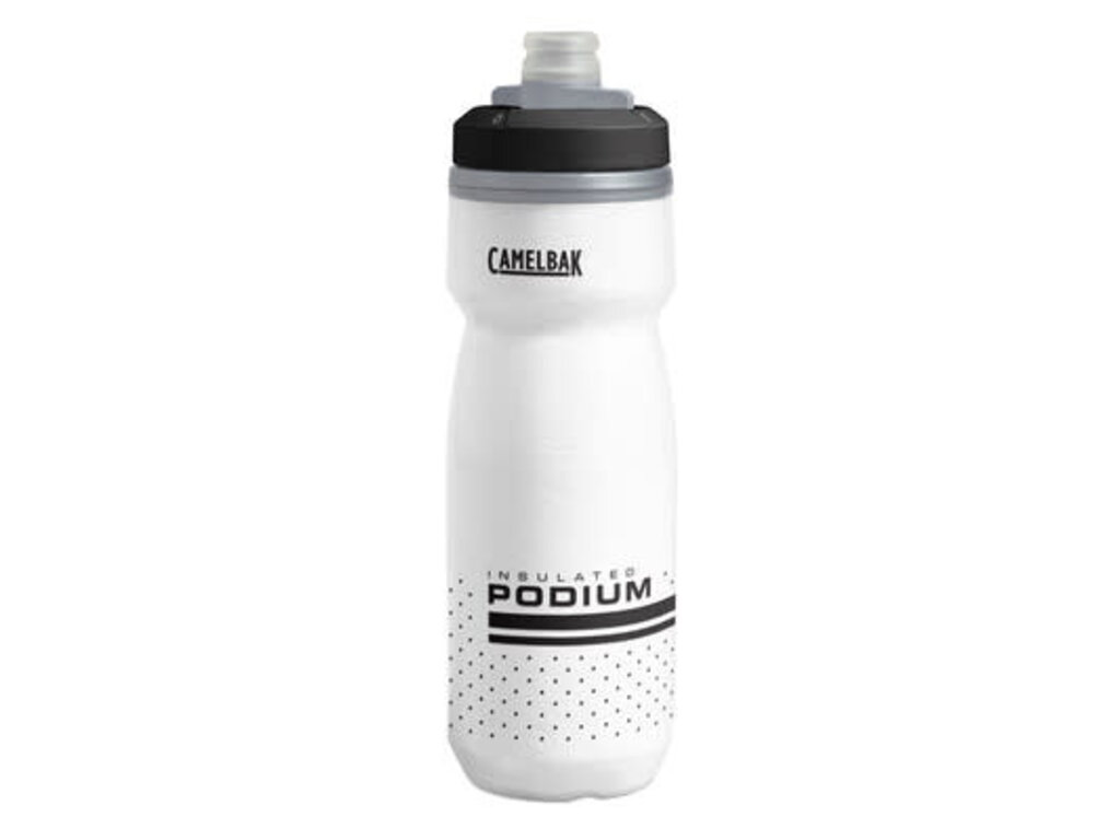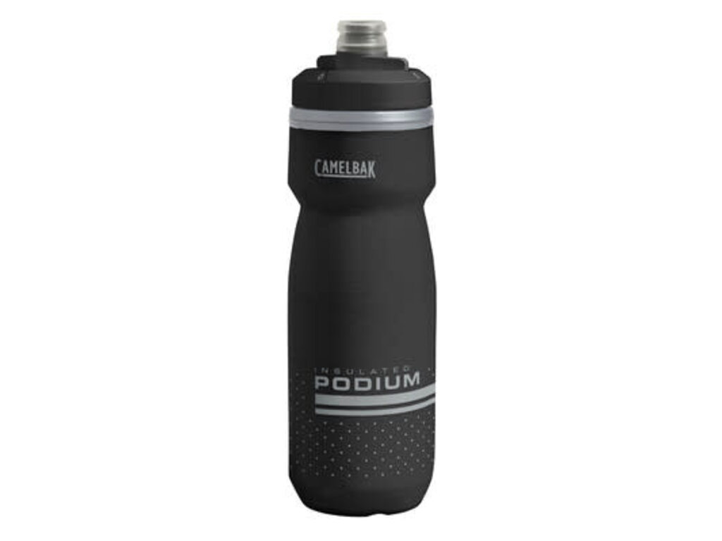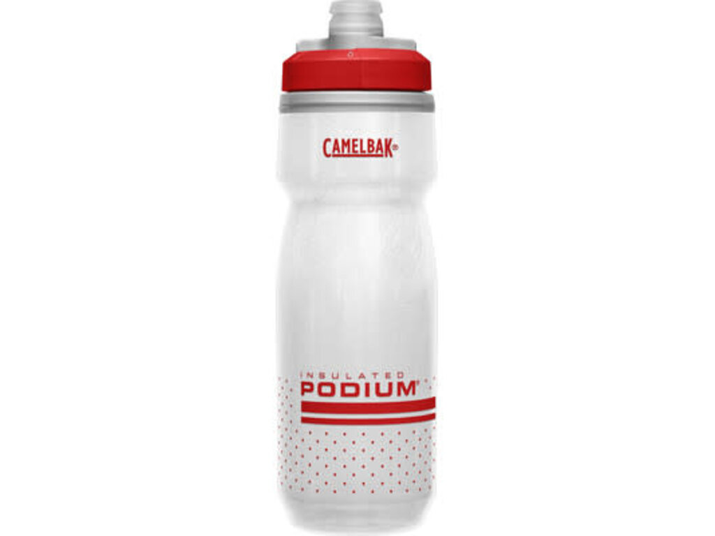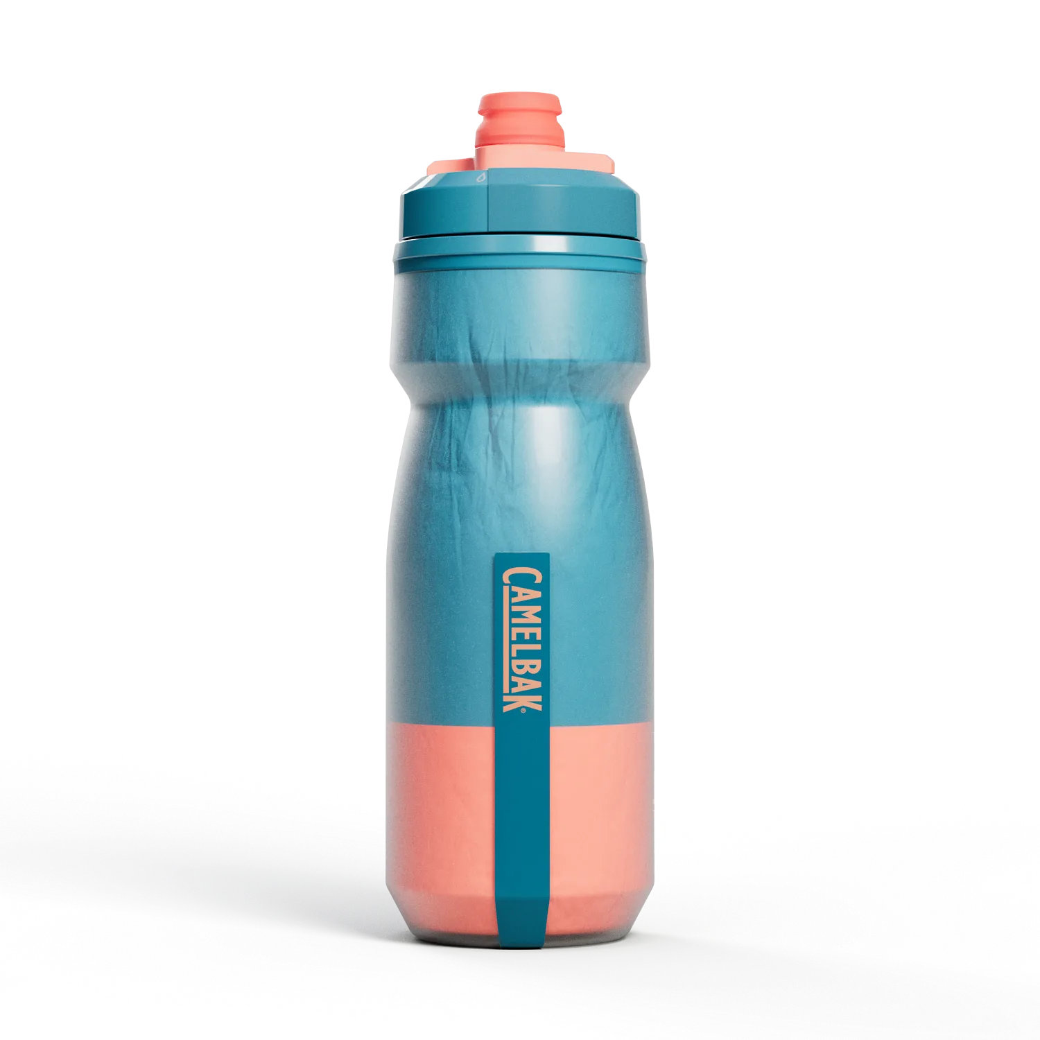 Derived from superior materials including Trutaste Polypropylene, and featuring double-wall insulation, the CamelBak Podium Chill Insulated Water Bottle is the perfect cold-storage water bottle for cycling adventures. Keeping your body properly hydrated and improving your on-road performance is simplified thanks to this revolutionary sports bottle. Cycling enthusiasts have for years trusted CamelBak to provide them superior bottles for water that are optimized for peak performance. And the Podium Chill bike water bottle continues to elevate CamelBak as the best of the best in the cycling world. This premium bicycle water bottle has been reengineered to securely fit in a variety of bicycle bottle cages. The water bottles are easy to squeeze, allowing you to take in more water with less effort. Our CamelBak reusable sports water bottles are engineered with a high flow, self-sealing cap, which maximizes flow rate while reducing spills and splashes. The Podium Chill is also 100% free of BPA, BPS, and BPF.