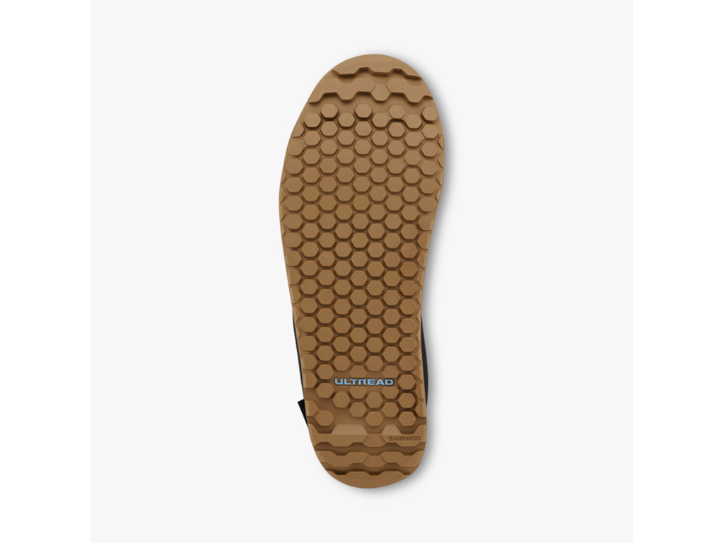 Outsole constructed with sticky, slow rebound ULTREAD GF rubber compound and features expanded arch area for more shoe-to-pedal contact. Hexagonal tread pattern provides multi-direction stability and secure pin engagement for confidence-boosting grip on the bike. When you need to dismount, heel and toe traction blocks keep you stable on slippery trails.