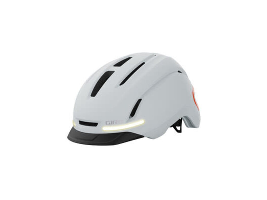 Choose to ride, choose to be seen. The Ethos™ Mips® is a revolution in transportation, with a compact and stylish form featuring the added protection of Mips® Brain Protection System highlighted by integrated LED front white lights, rear red lights, and amber turn signals, all controlled via an intuitive handlebar remote. The entire system is USB-C rechargeable with an estimated run time of 10 hours in low-blink mode and 5 hours in the high-blink mode, which delivers 45 lumens front and 30 lumens rear. Helmet and remote can be fully charged in just 2 hours and 1 hour, respectively. The Ethos Mips features a TPU soft rubber waterproof brim. (The Ethos Mips also is available with a clear, molded eye shield as the Ethos Mips Shield). Despite the added technology, in-mold construction keeps the weight manageable, full hardbody coverage adds durability, and a Roc Loc® City Mips fit system plus quick-dry padding ensure comfort. Whether you're a dedicated bike commuter, running the kids to school on your e-cargo bike, or simply looking for added visibility as you ride around town, the Ethos Mips is a look into the future.