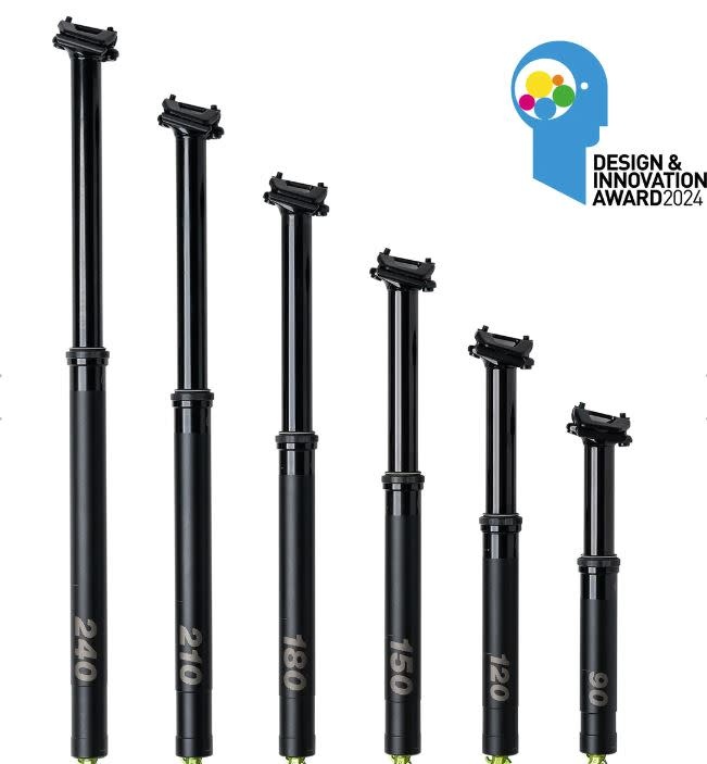 - Shortest total length of any dropper post (measured seat rails to end of actuator)