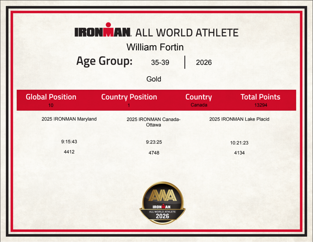 Si une course définit sa force de caractère, c'est l'Ironman de Tremblant en 2022. Le départ avait lieu le lendemain de la naissance de sa fille. Épuisé par une nuit blanche à l'hôpital, il a tout de même pris le départ, allant même jusqu'à faire un court « power nap » sur le parcours de course à pied pour terminer l'épreuve. Pour lui, cette ligne d'arrivée prouve que la persévérance surpasse toujours la fatigue.