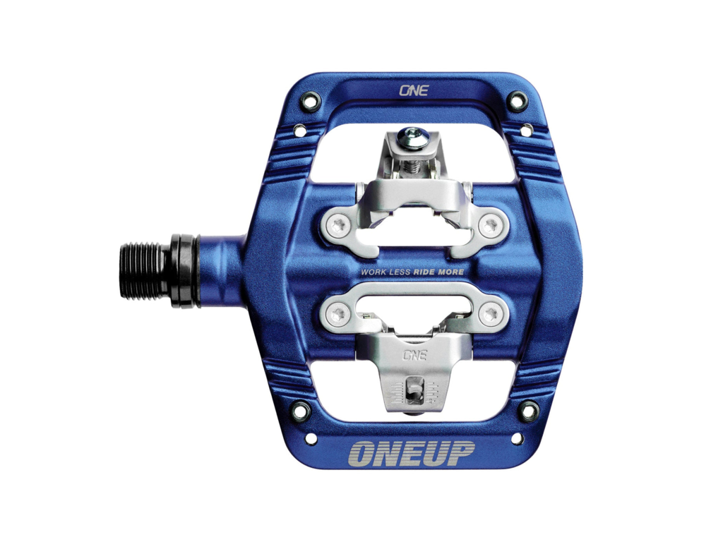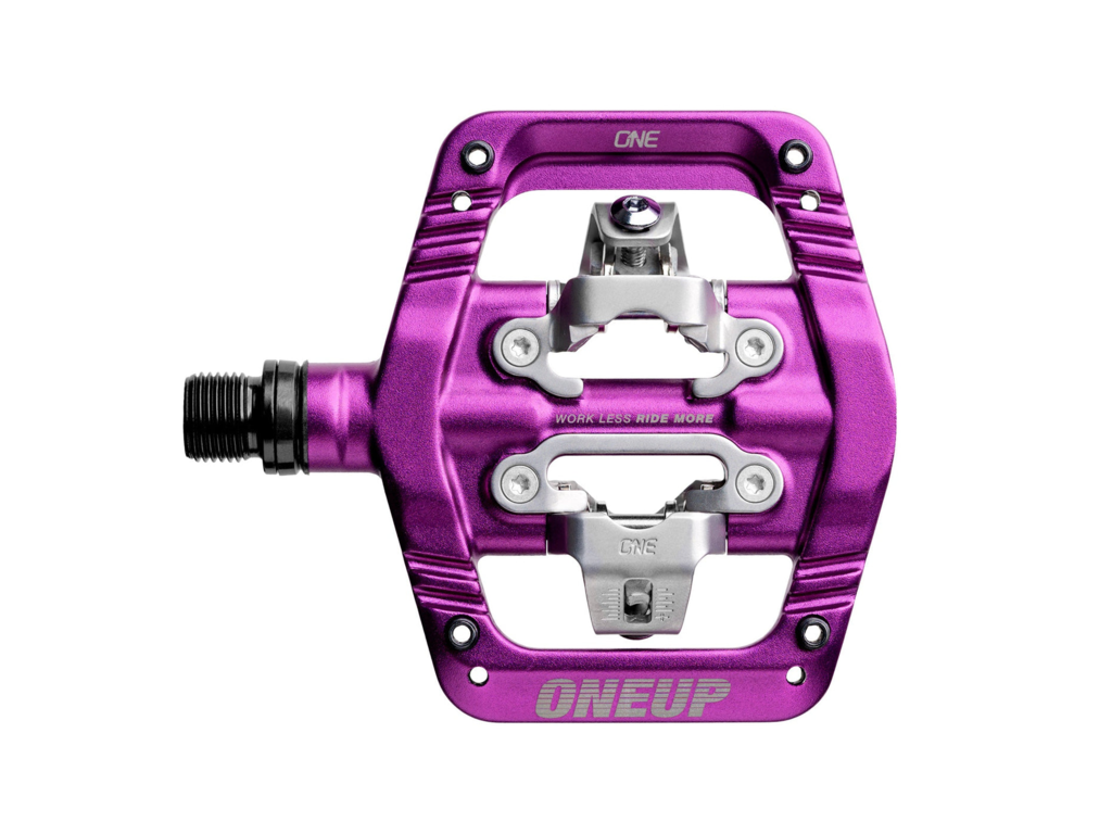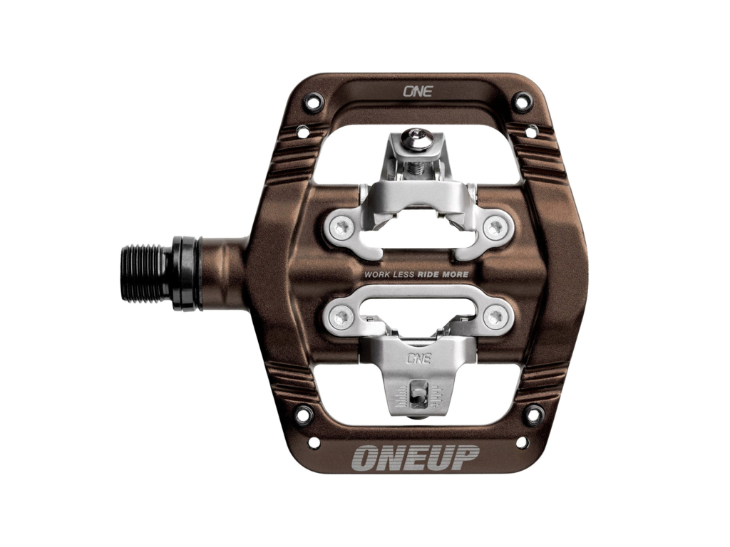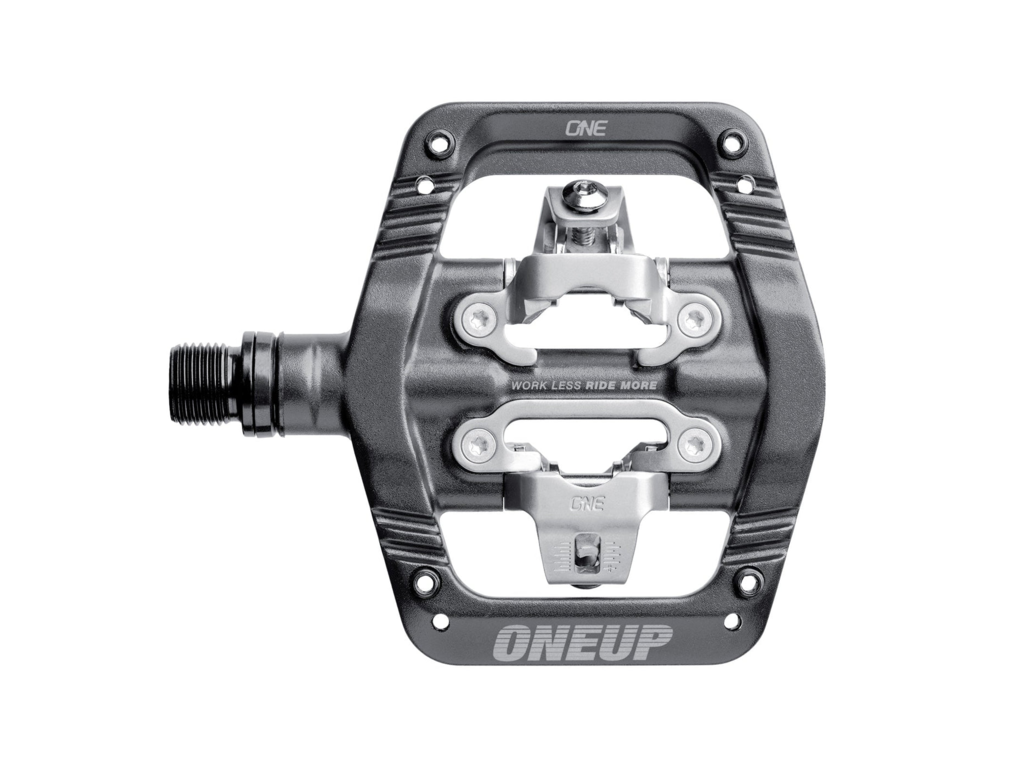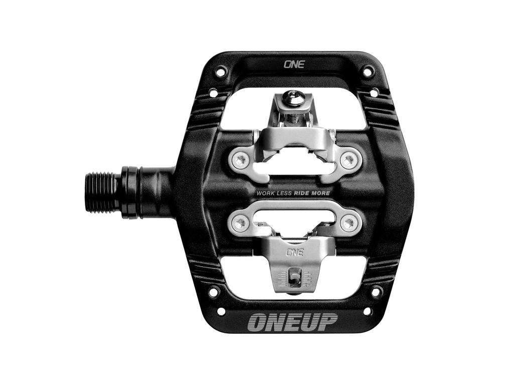 • La fixation personnalisée en acier inoxydable compatible SPD  offre une sensation de verrouillage sans jeu indésirable et fonctionne avec les cales OneUp et les cales Shimano SPD  .